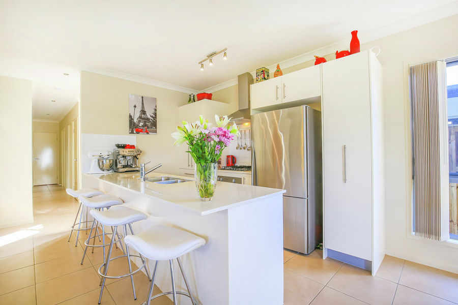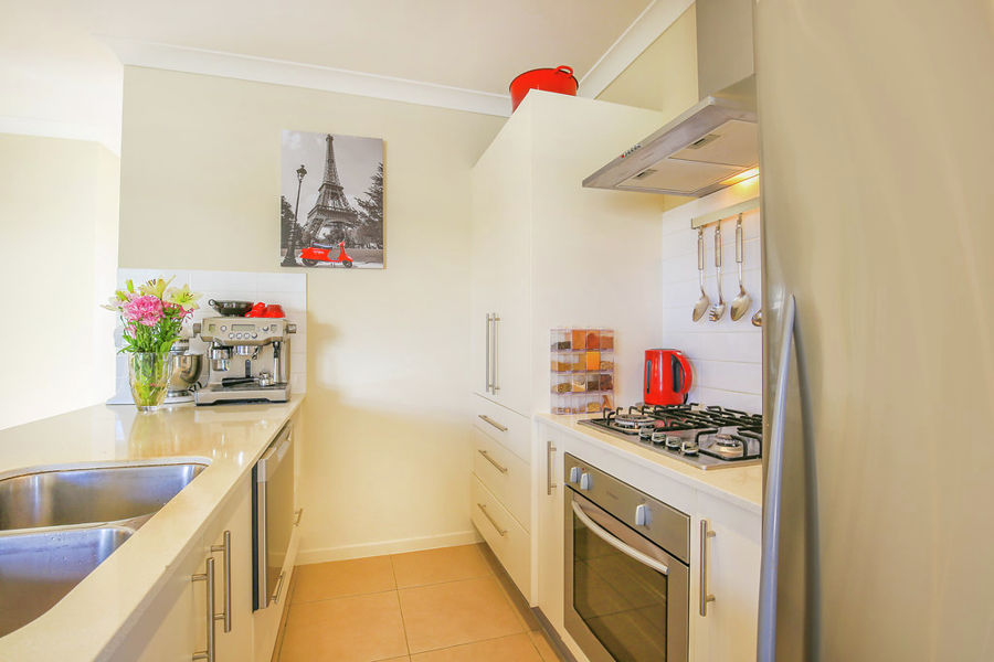 * Modern Kitchen with Stone Bench Tops, Dishwasher, 2 x Recessed drop in deep sinks,