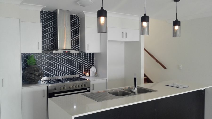 * Stylish kitchen with pendant lighting