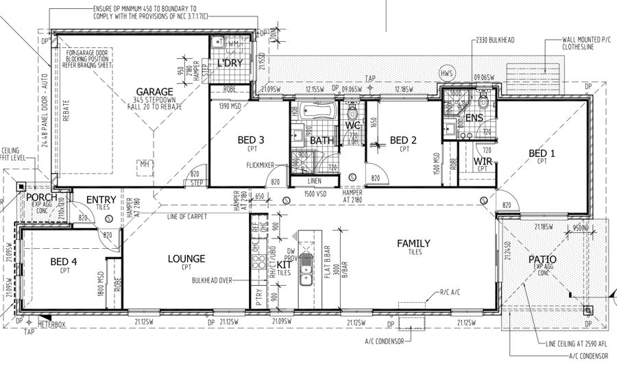 * Stone bench tops in Kitchen and Bathrooms