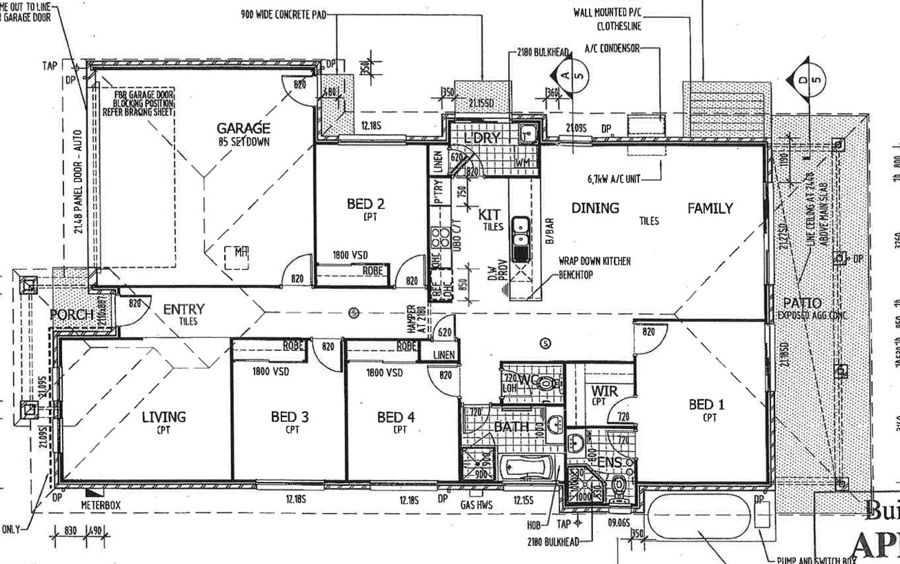 * Separate laundry beside the kitchen with a built in linen cupboard
